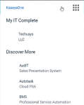 In Datto Partner Portal, click App Launcher and you will see a list of the modules enabled for Unified Login under the My IT Complete heading; click the KaseyaOne link to open KaseyaOne.