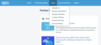 Log into the Datto Partner Portal and navigate to Admin > Security Settings.