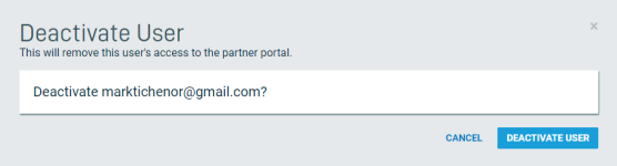 Deactivated accounts cannot log into the Partner Portal or use any of the Portal's features, but their account details remain saved pending future reactivation.
