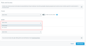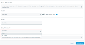 3. Use the corresponding drop-down menu to select whether the new employee will have No access or Full access to BCDR and to Cloud Continuity.