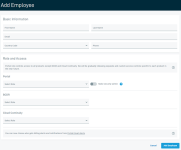 2. The Add Employee dialog box will appear. Fill out the employee's personal information, then select the drop-down menu for Portal to choose the employee's role. See the Employee Roles section of this article for more information.