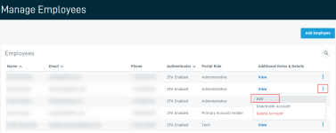 Click the ellipsis icon next to the desired employee, then click Edit.